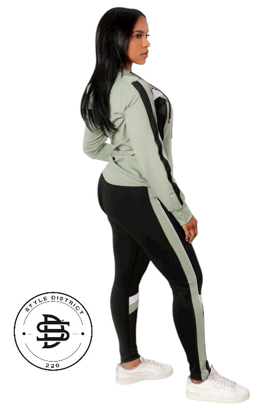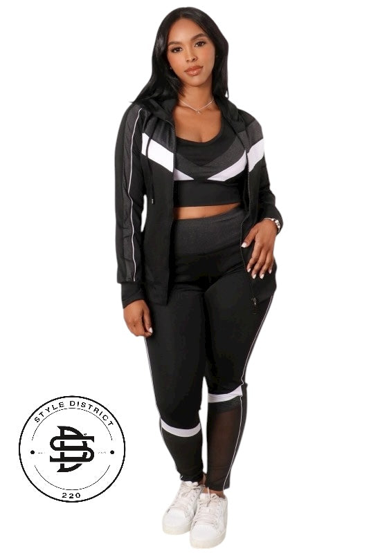 3pc active sets. Set includes top, jacket and matching bottoms. True to sz with good stretch.